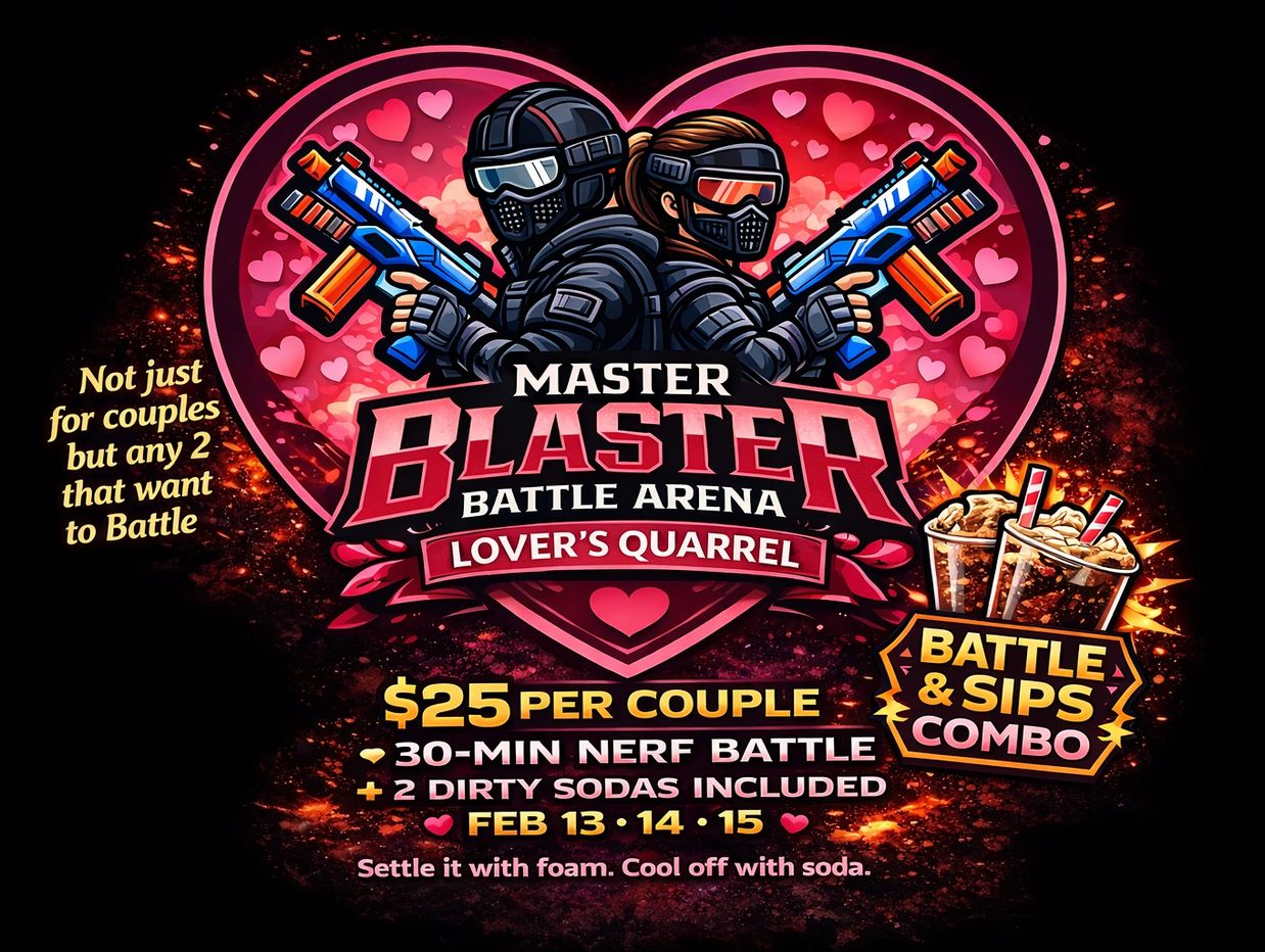 Walk in during Feb 13, 14 and 15th for our Valentine's Weekend Special. Perfect for date time or any two who just want to come in a battle. Cool down with a refreshing dirty soda.